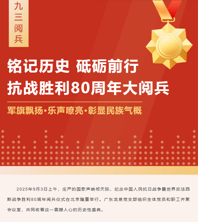 銘記歷史,砥礪前行|廣東龍泉組織觀看紀(jì)念中國(guó)人民抗日戰(zhàn)爭(zhēng)暨世界反法西斯戰(zhàn)爭(zhēng)勝利80周年大會(huì)